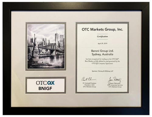 美国时间2019年4月29日,贝罗尼集团有限公司(股票代码:BNIGF)在美国OTCQX市场上开始正式挂牌交易,实现了贝罗尼集团全球发展史上重要里程碑式的跨越!